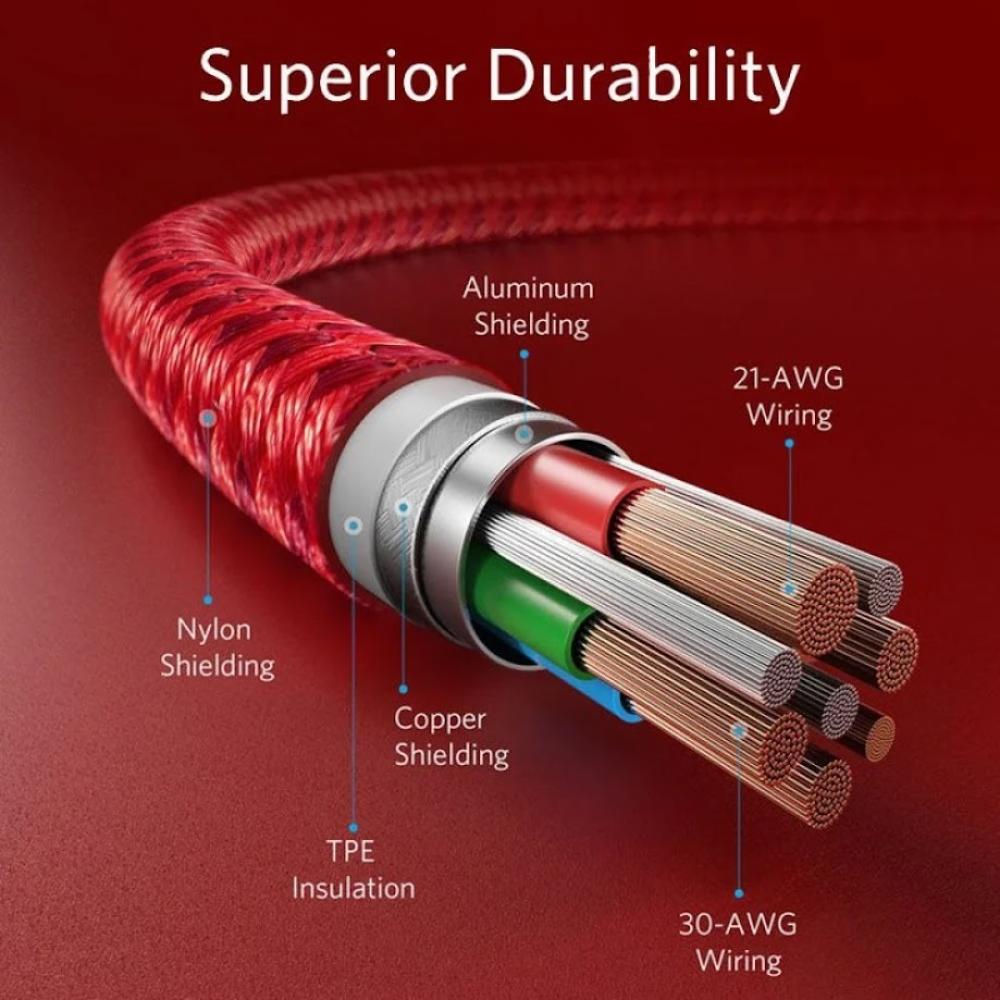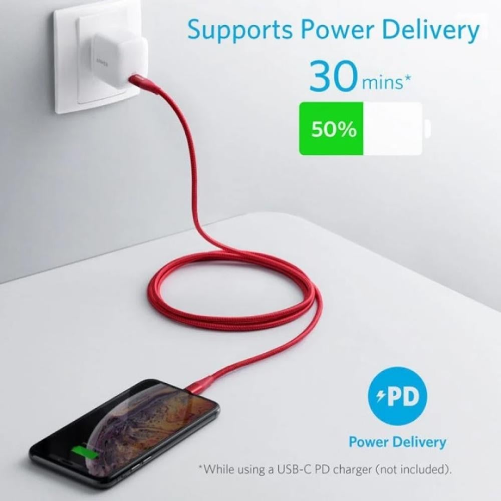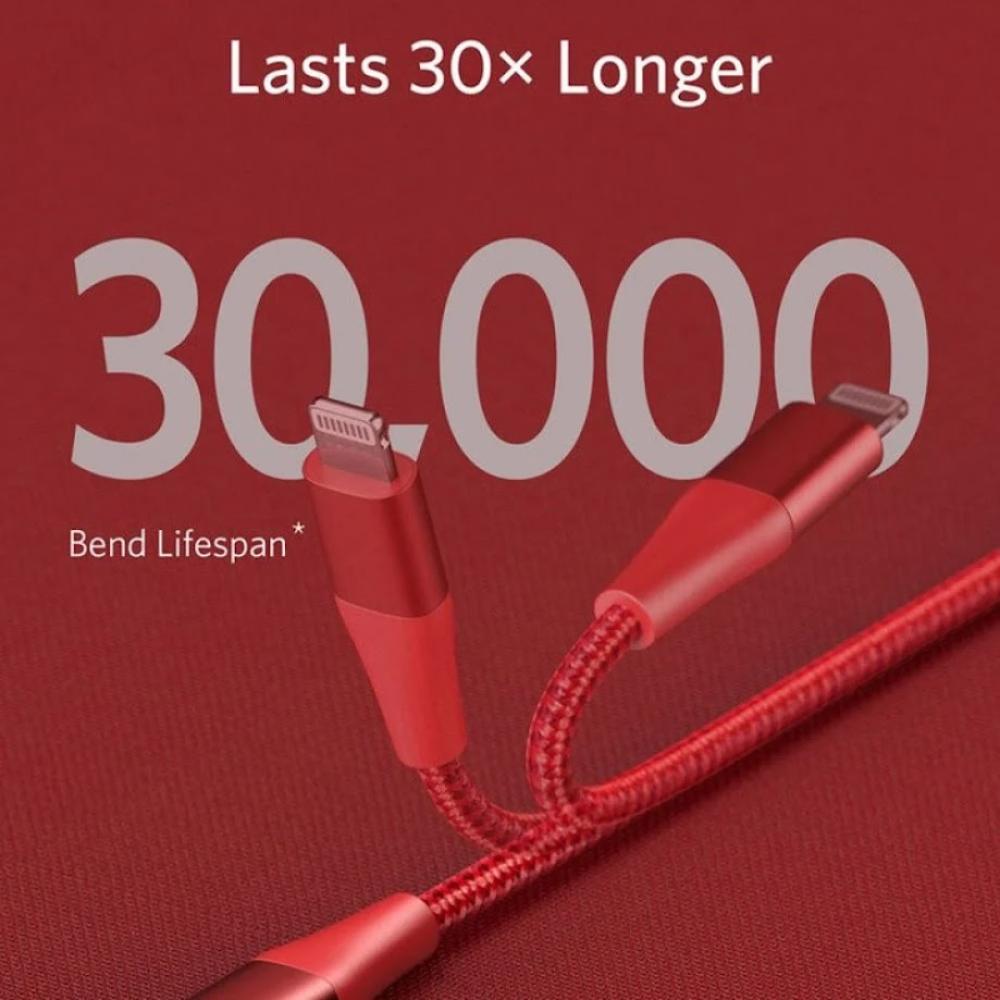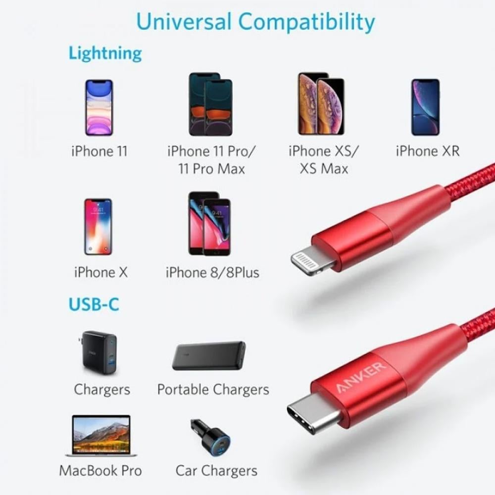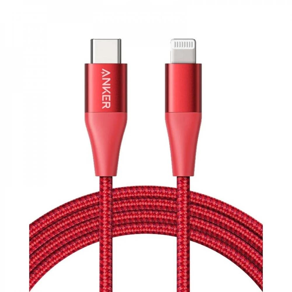 سلك شاحن انكر باورلاين بلس الاصدار الثاني من Type-C الى ايفون بطول 1.8م - احمر