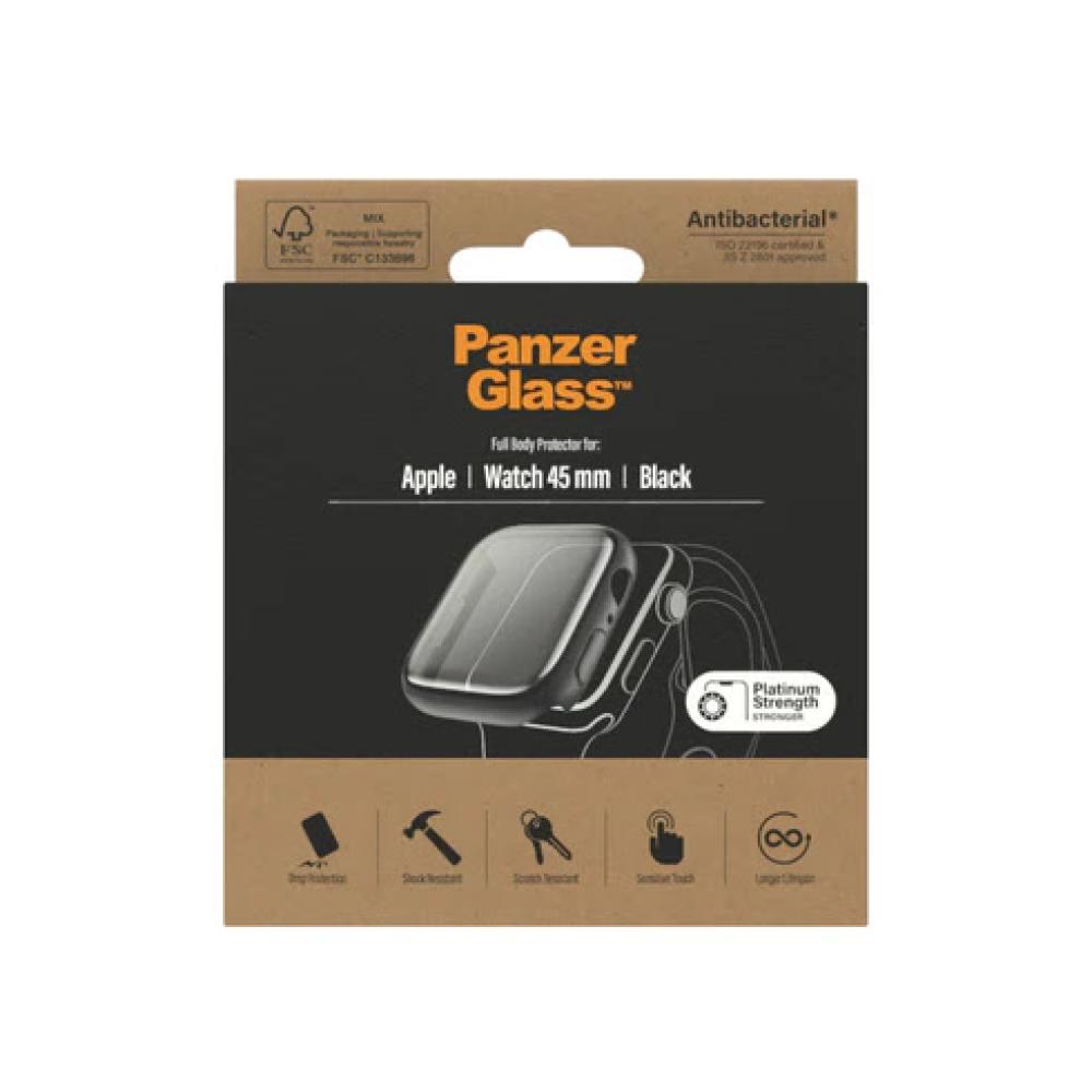 حماية شاشة من بانزر جلاس لساعة ابل الجيل السابع 45 مم حماية كاملة - شفاف/اسود