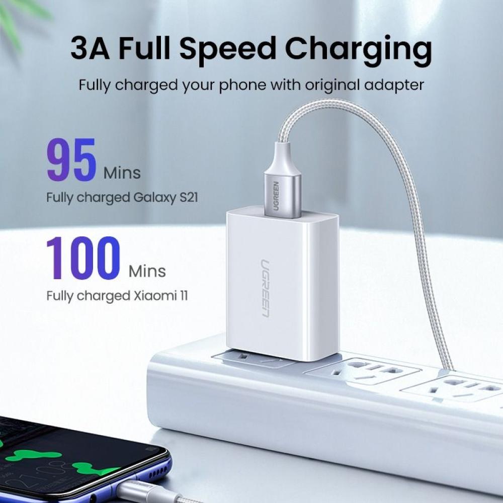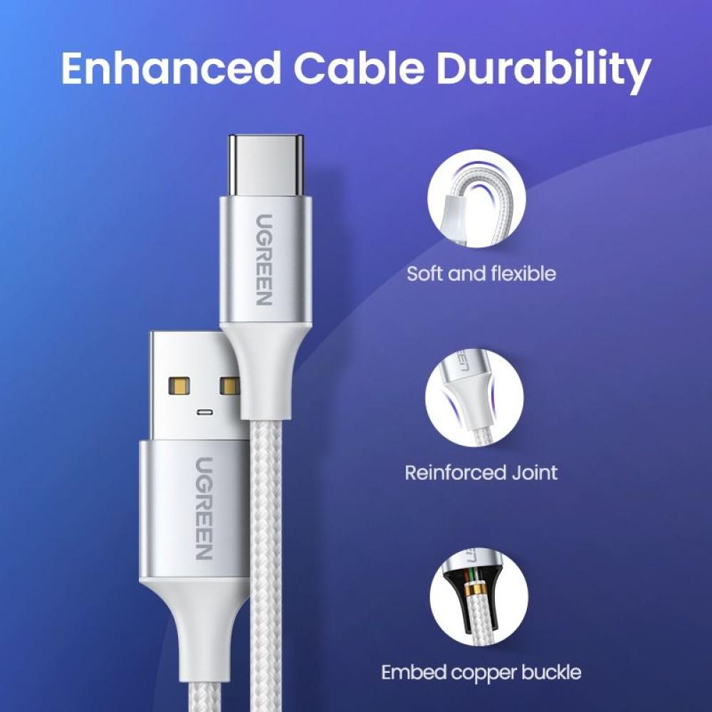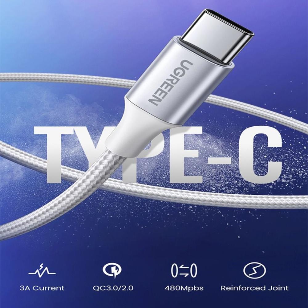 يوجرين كيبل شاحن من USB إلى USB-C مضفر بطول 1م - أبيض